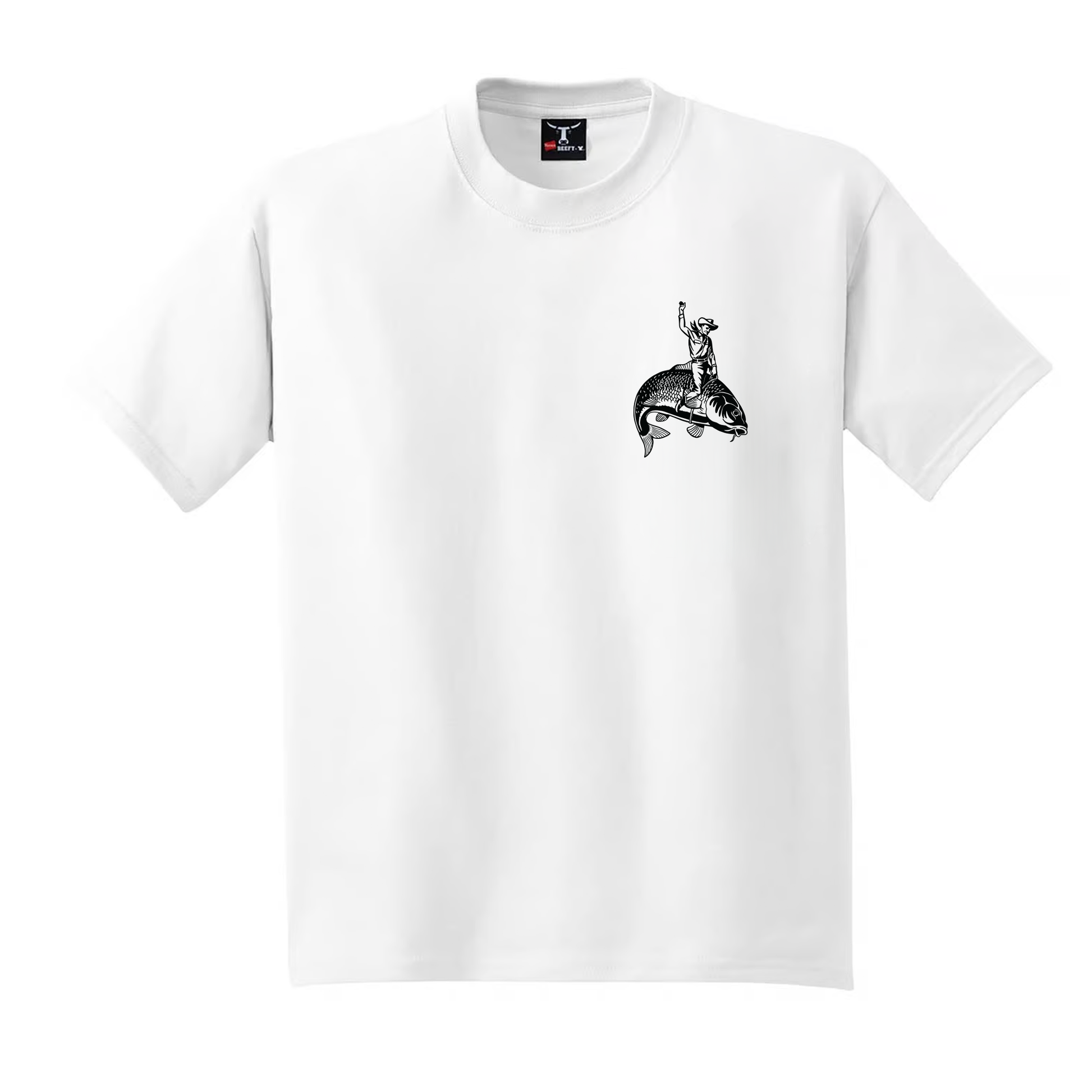 Black and slightly sun burnt orange on a white Hanes Beefy Tee.